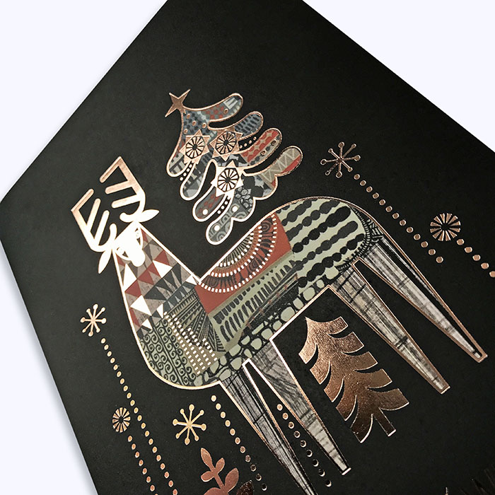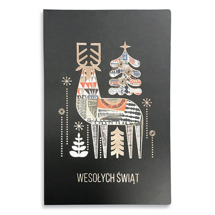 Kartka Świąteczna z Miedzianym Hotstampingiem Fs995 Kolorowy Renifer