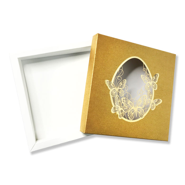 Pudełko wykonane jest z wysokiej jakości papieru o subtelnym połysku, co nadaje mu luksusowy charakter. Na froncie zastosowano eleganckie złocenie oraz precyzyjne cięcie ażurowe wykonane laserem, podkreślające wyjątkowość produktu.