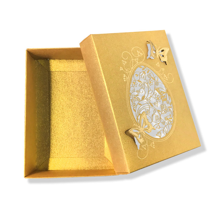 Ekskluzywne pudełka wykonane z wysokiej jakości papieru barwionego w masie. Dekoracyjny motyw wielkanocny został precyzyjnie wykonany techniką cięcia laserowego i hotstampingu, nadając pudełku wyjątkowy, świąteczny charakter. Możliwość naniesienia logotypu sprawia, że opakowanie idealnie sprawdzi się jako elegancka forma prezentacji upominków firmowych i indywidualnych.