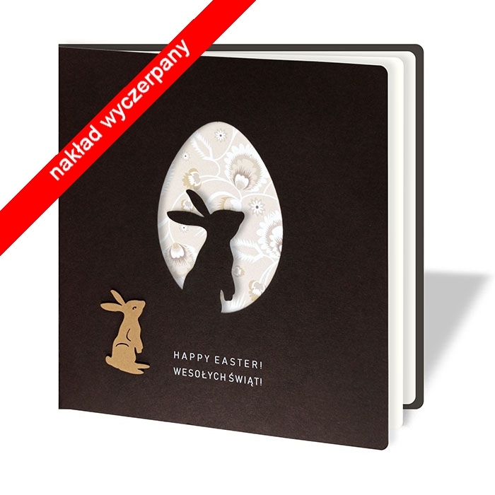Okładka została wykonana z wysokiej jakości matowego papieru w kolorze głębokiego brązu. Centralnym elementem jest laserowo wycięta pisanka, przez którą widoczny jest delikatny, beżowy nadruk inspirowany motywem ludowym. Wzór ten nadaje kartce lekkości i dekoracyjnego charakteru, jednocześnie zachowując elegancką prostotę.