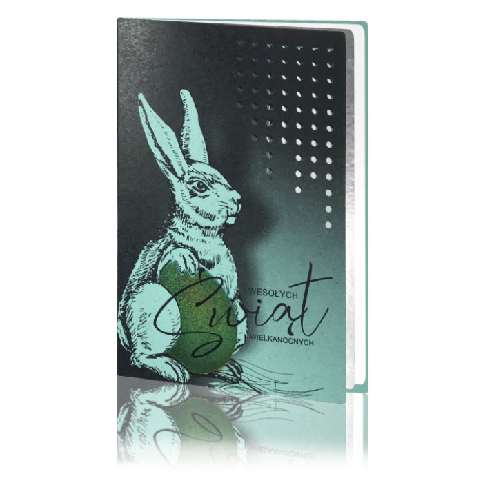 Idealna propozycja dla osób i firm, które cenią sobie luksusowe, a jednocześnie ekologiczne rozwiązania. Kartka łączy nowoczesny styl z troską o środowisko, oferując wyjątkową formę wielkanocnych życzeń.