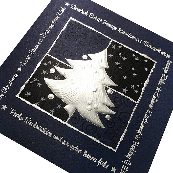 Motyw świąteczny wykonany techniką druku uszlachetnionego srebrzeniem i tłoczeniem. Karty wykonane z ogromną starannością i dbałością o detale. Precyzyjny nadruk, dokładność wykonania oraz wysokiej jakości papier.