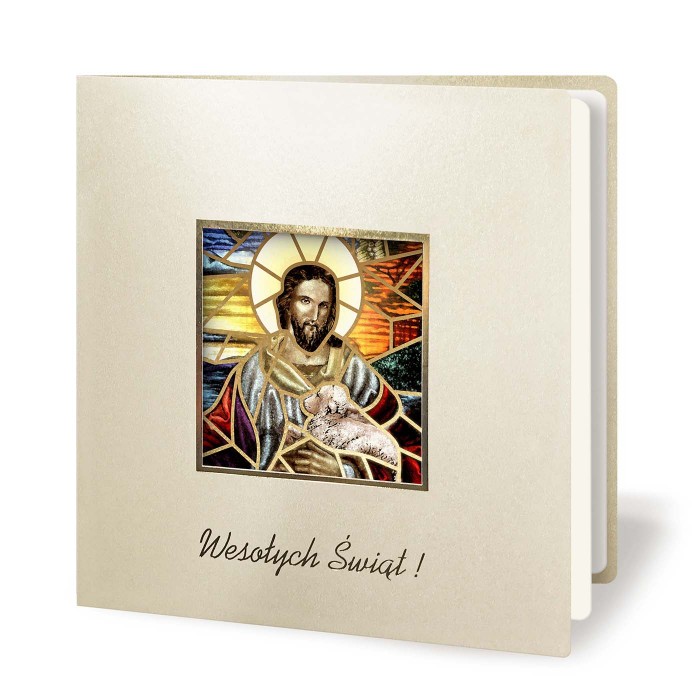 Kartka Wielkanocna z Witrażową Grafiką Złoty Pasterz