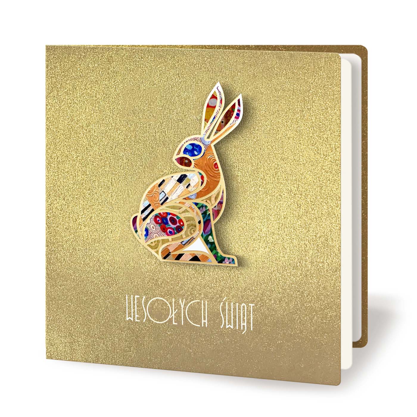 Kartka Wielkanocna z Królikiem 3D Złoty Blask Świąt
