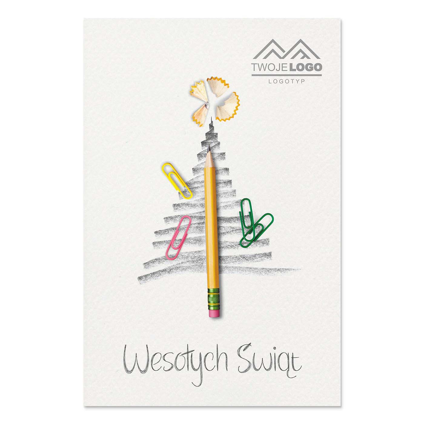 Nietuzinkowa kartka świąteczna, która zaskakuje pomysłowością i lekkością przekazu. Okładkę zdobi ilustracja w formie naszkicowanej choinki, której pień stanowi ołówek, a ozdoby - kolorowe spinacze biurowe. Delikatna kreska i subtelna kolorystyka idealnie wpisują się w nowoczesny, minimalistyczny styl. Całość została nadrukowana na wysokiej jakości niepowlekanym papierze bezdrzewnym klasy premium o doskonałej białości, zapewniającej wyrazisty kontrast i elegancki wygląd.