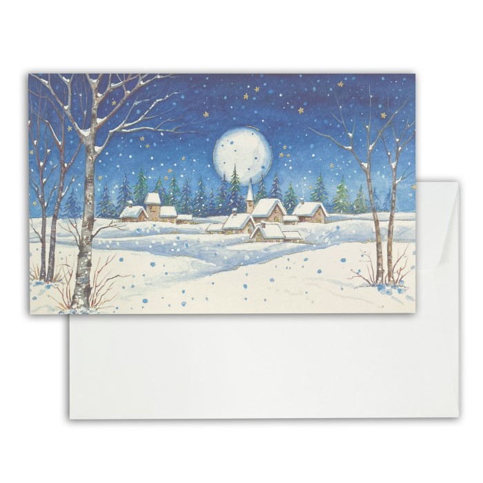 Kartka Świąteczna z zimowym motywem bez nadruku. Dodatkowo okładka, jest zdobiona złoceniem. To idealny wybór dla tych, którzy pragną przekazać życzenia w najbardziej autentyczny sposób.