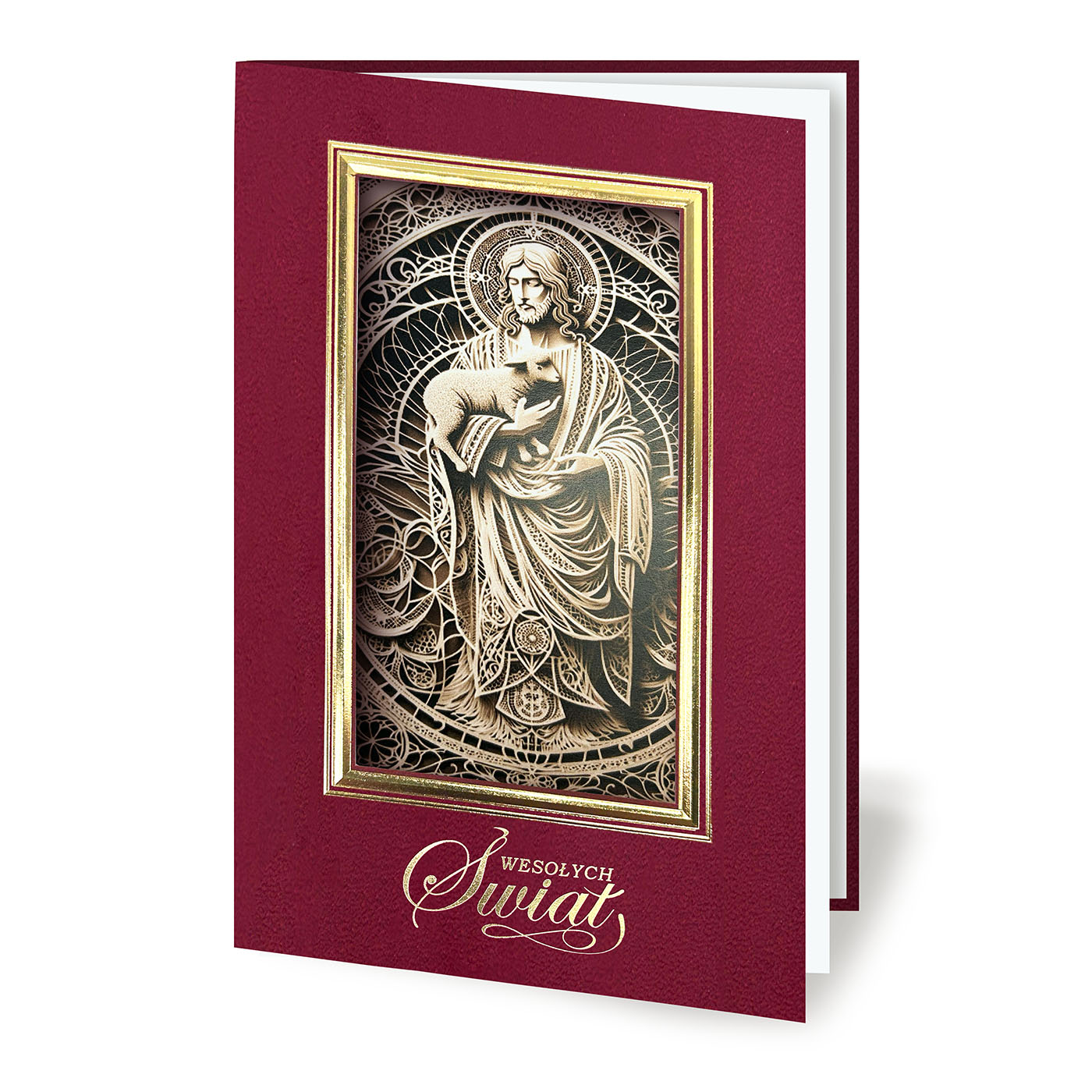 Kartka Wielkanocna z Religijnym Motywem Bordowa Opieka w Ramce 3D