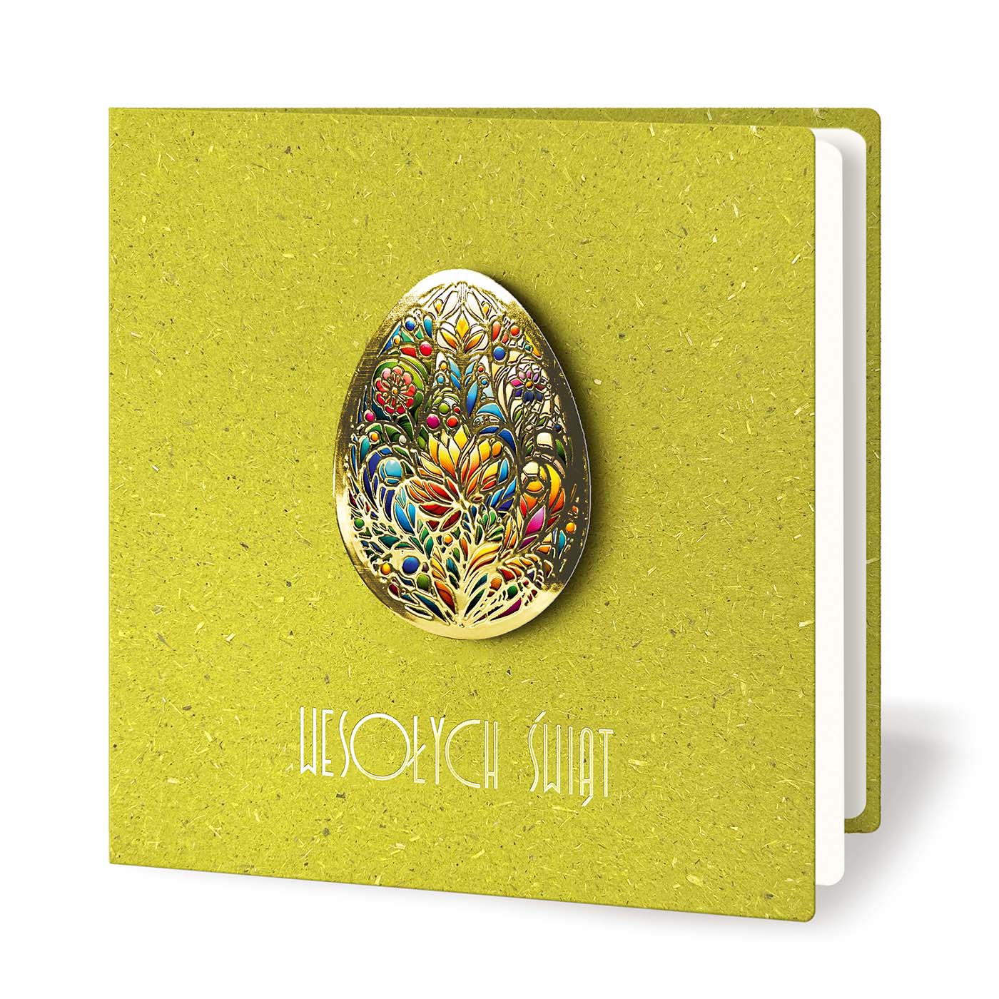 Złocony napis na okładce dodaje kartce elegancji i subtelnie równoważy jej ekologiczny charakter. To propozycja dla marek i osób, które chcą przekazać wielkanocne życzenia w sposób świadomy, nowoczesny i jednocześnie prestiżowy.