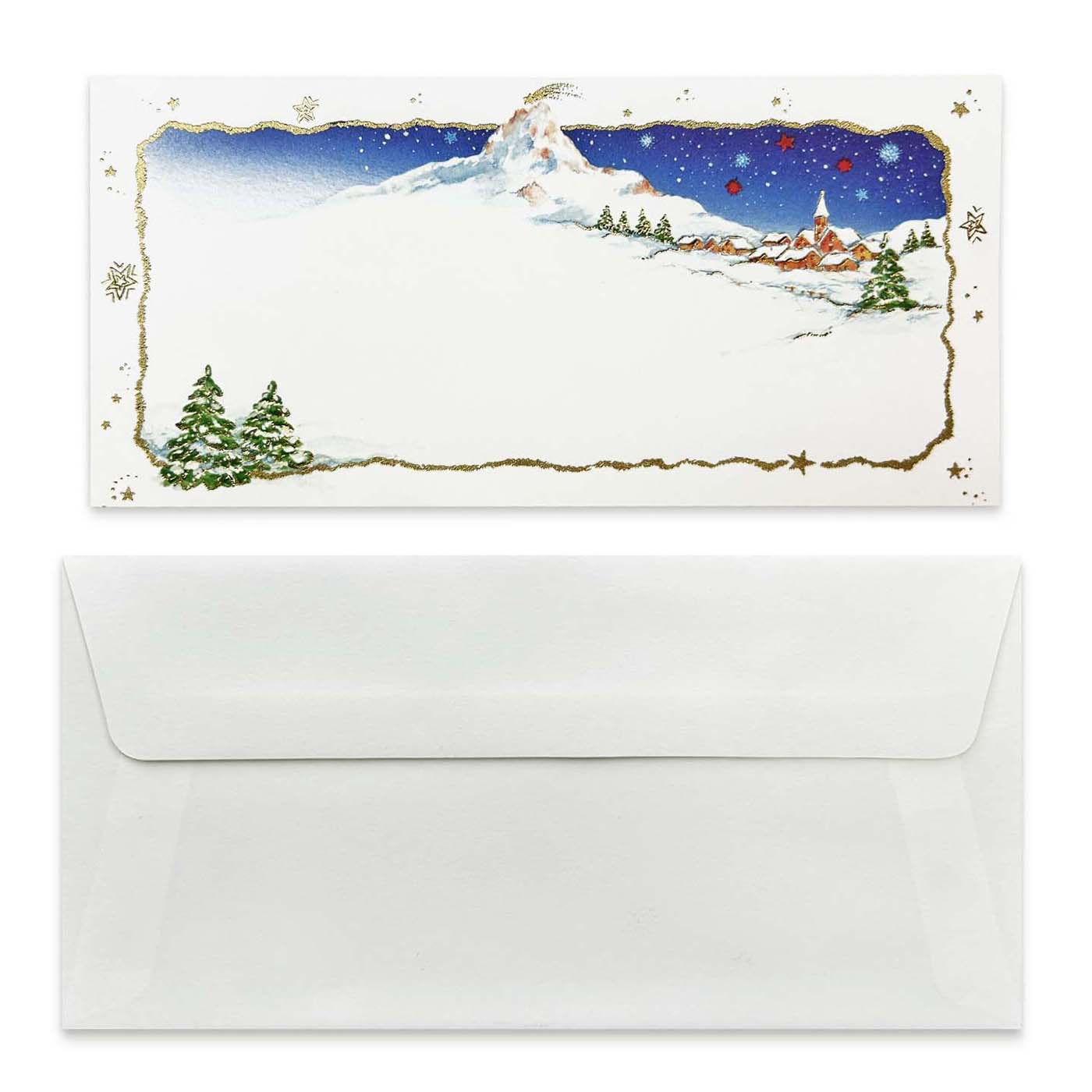 Kartka świąteczna z kopertą, wykonana z wysokiej jakości ozdobnego papieru, z precyzyjnie nadrukowaną grafiką świąteczną i uszlachetnieniem, łączy w sobie prostotę i elegancję. Idealna do samodzielnego wypisania życzeń lub nadruku we własnym zakresie.