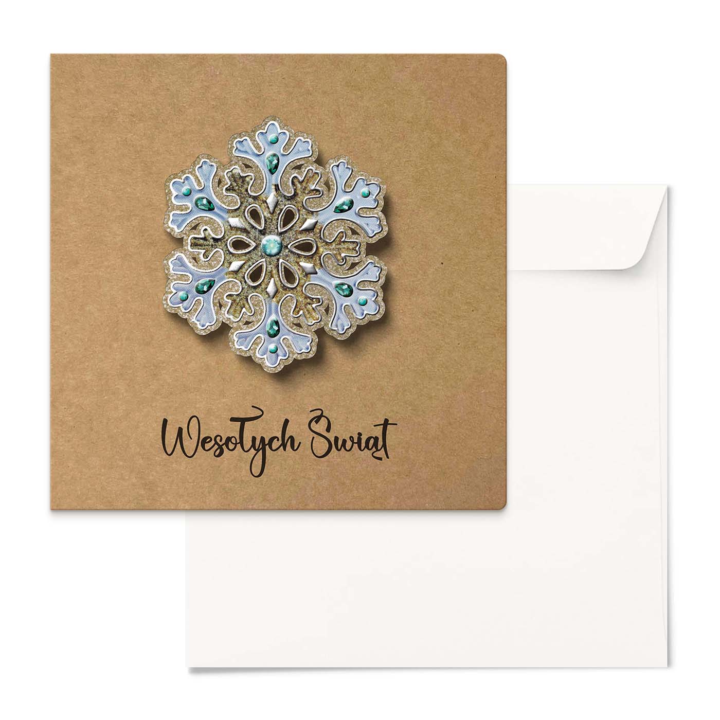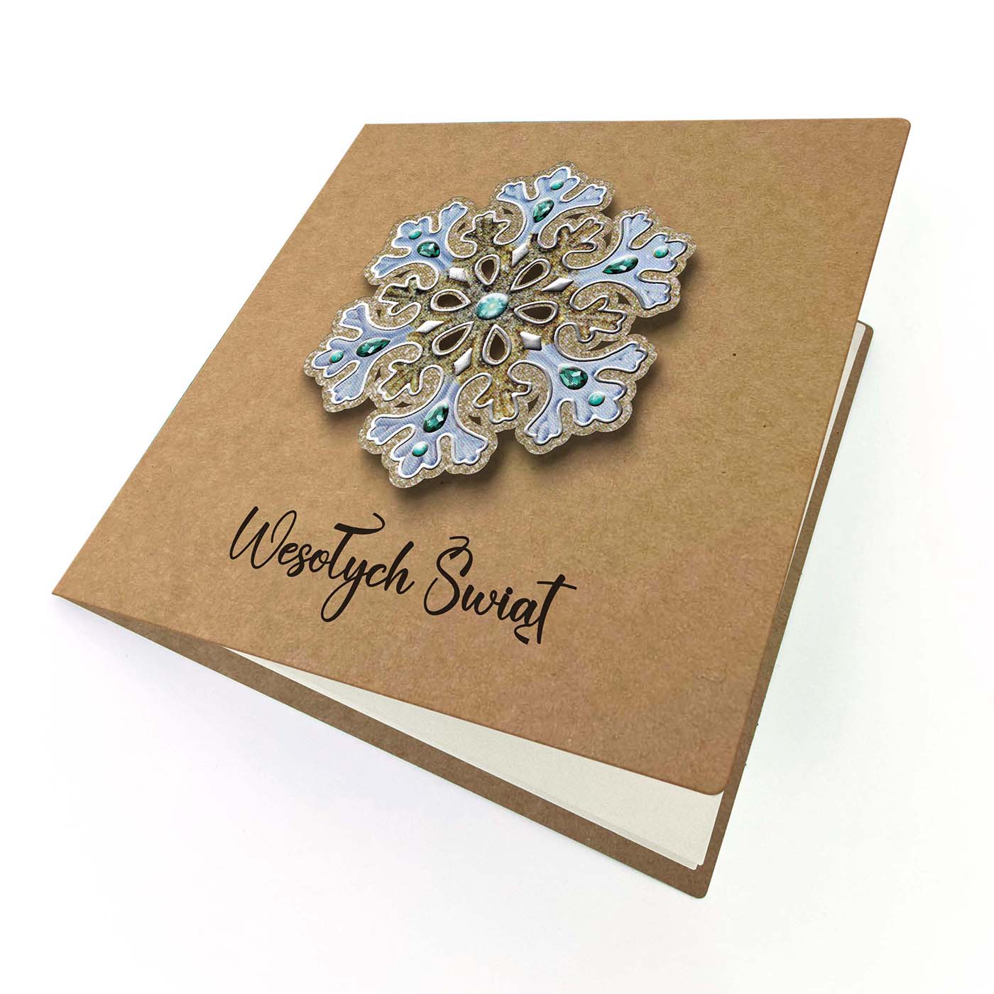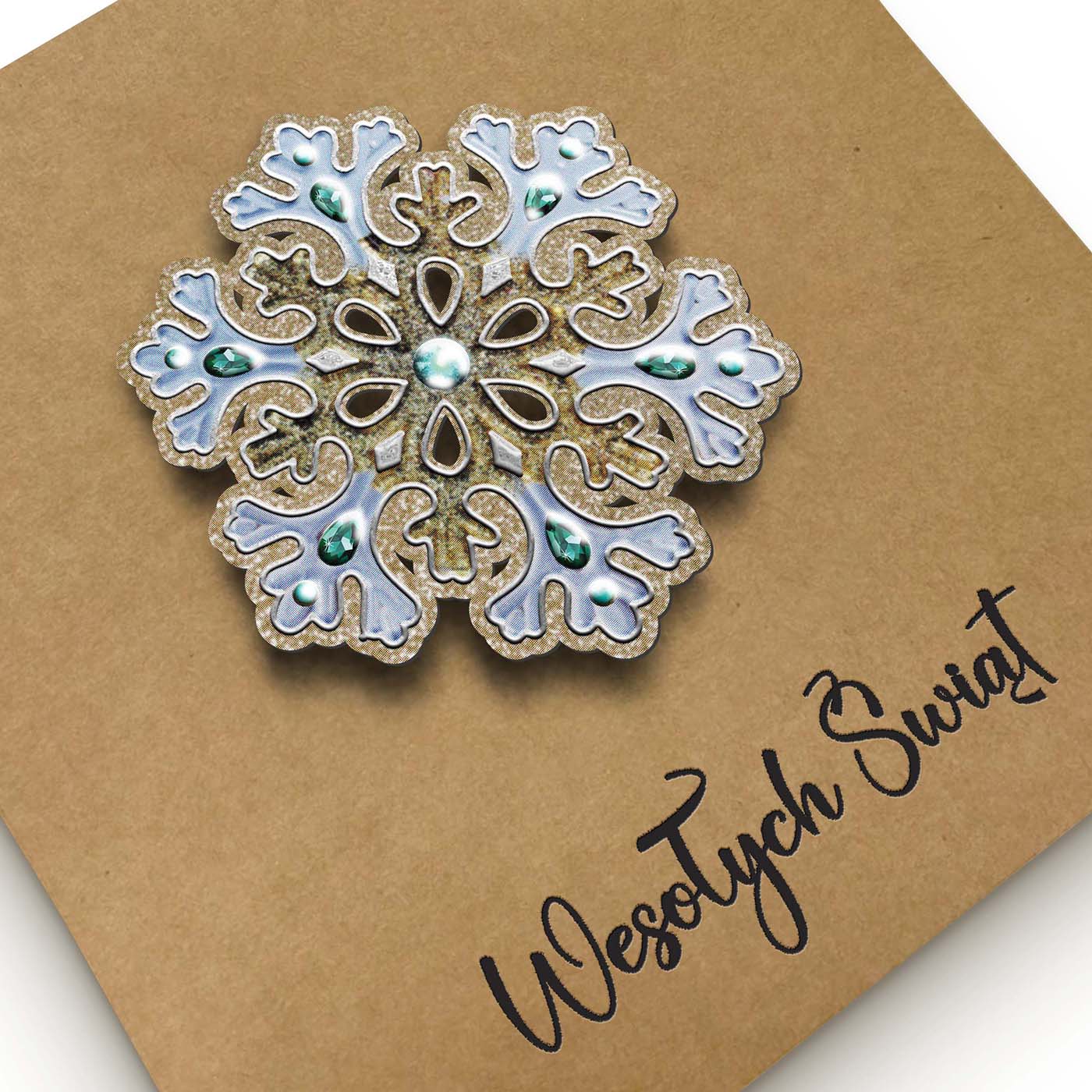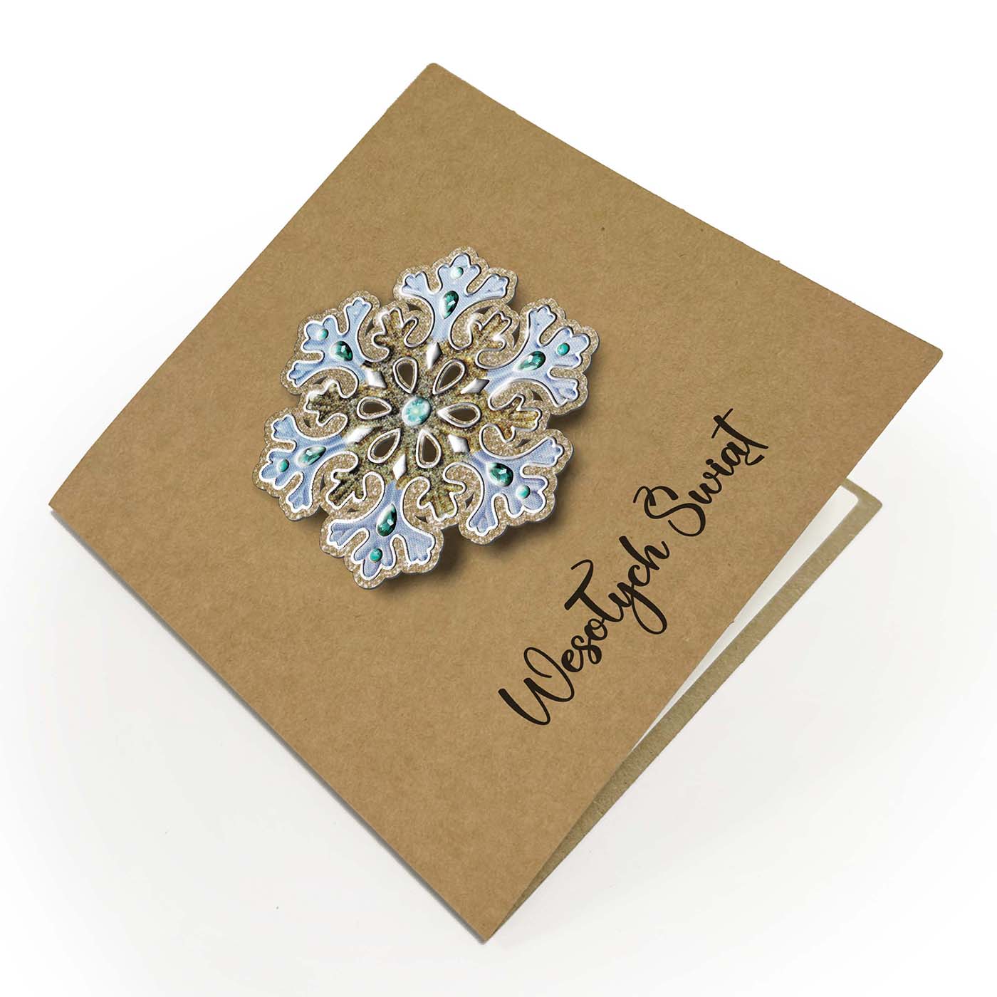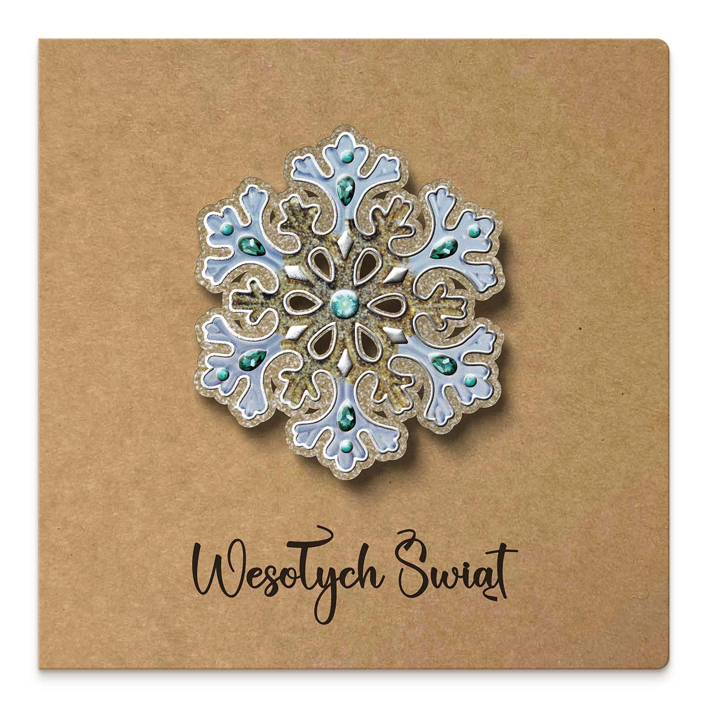 Zachwycająca kartka z kolekcji ECO DESIGN, stworzona z ekologicznego papieru kraftowego i ozdobiona bogato zdobioną aplikacją w formie śnieżynki 3D. Motyw płatka wykonano z papieru zdobionego srebrzeniem 3d. Elegancka forma i naturalna baza tworzą efektowny kontrast, który przyciąga uwagę.
