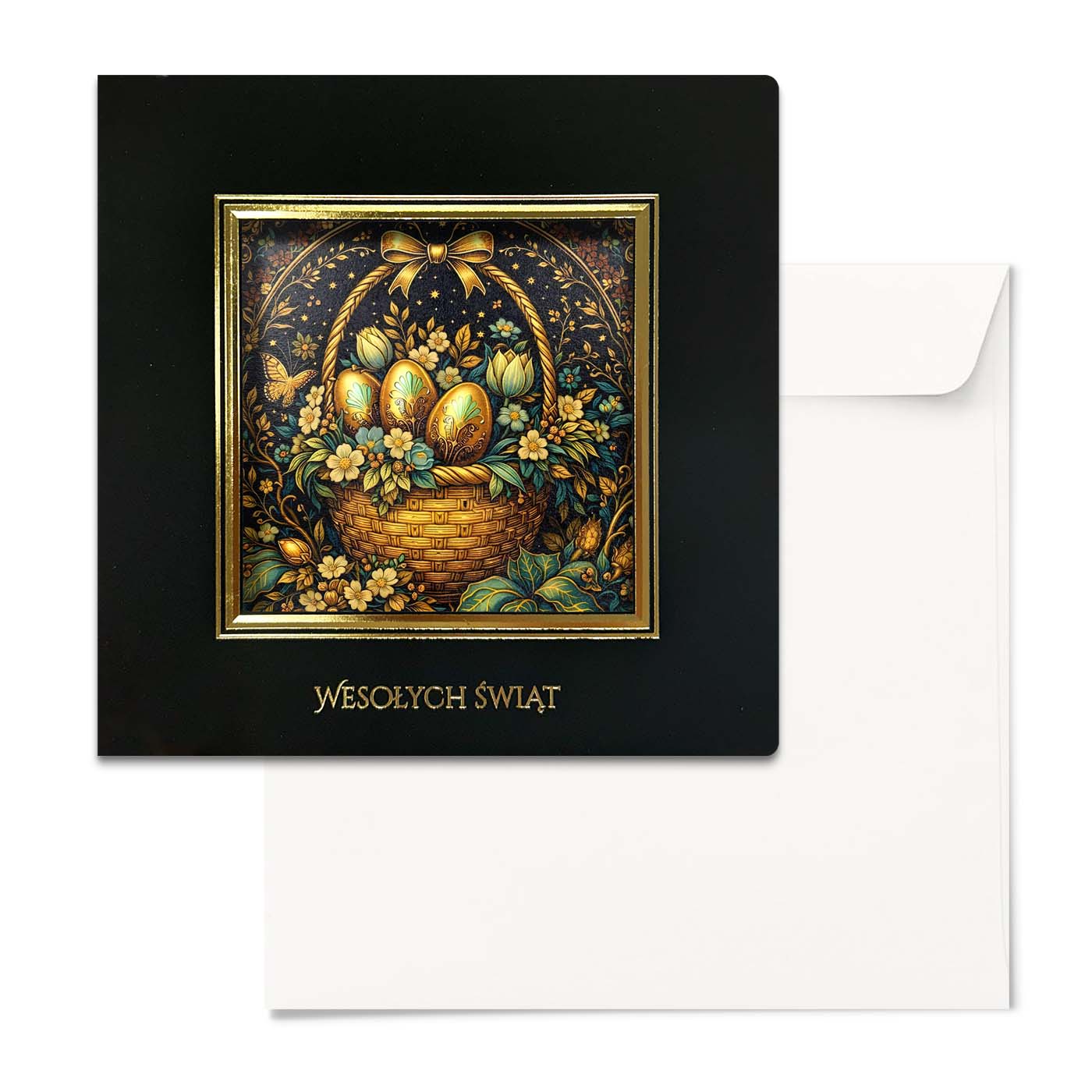 Kartka Wielkanocna - Koszyk wielkanocny premium Duży format 160 na 160
