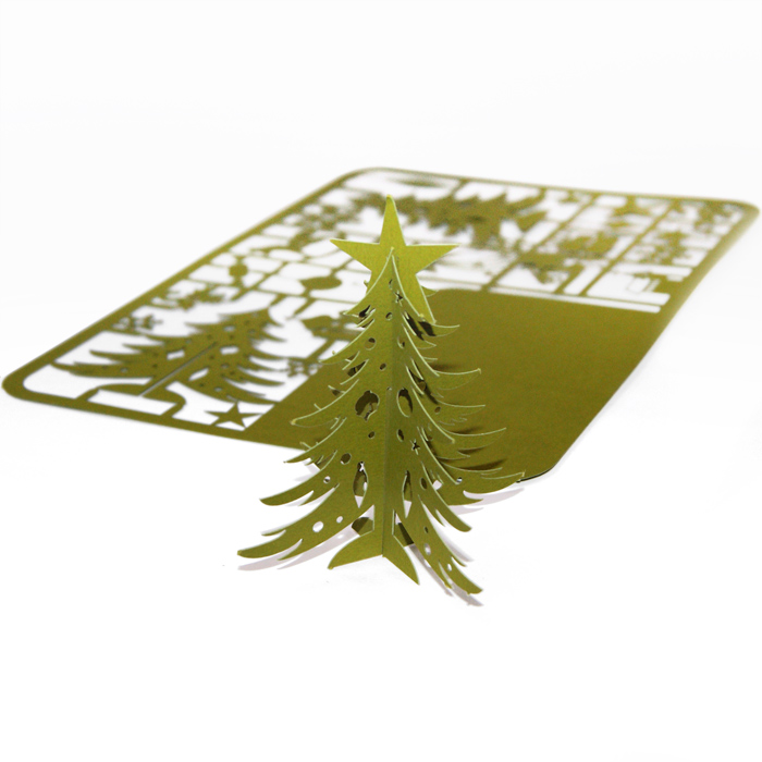 Kartka została wykonana z wysokiej jakości papieru matowego o doskonałej sztywności. Nadruk tekstu oraz logotypu nanoszony jest bezpośrednio na okładce. Starannie wykonane wycięcia pozwalają uzyskać efektowną, przestrzenną ozdobę, która po Świętach może stać się symboliczną dekoracją.