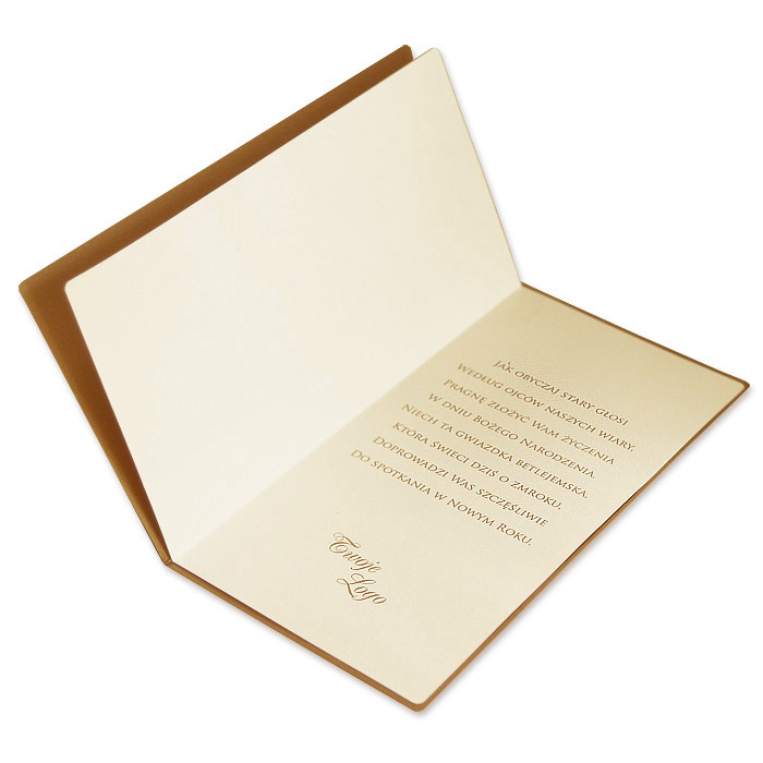 Rzemieślnicza jakość, której nie da się podrobić Wszystkie kartki tworzymy w oparciu o tradycyjne techniki rzemieślnicze i najnowsze rozwiązania technologiczne. To nie jest masowa produkcja. To świadome rzemiosło. Każdy projekt to proces: od pomysłu, przez dobór papieru, złocenia, tłoczenia, aż po perfekcyjne wkomponowanie logo Twojej firmy. Nie używamy przypadkowych szablonów. Nie oszczędzamy na materiałach. Bo Twoja marka zasługuje na oprawę, która oddaje jej charakter