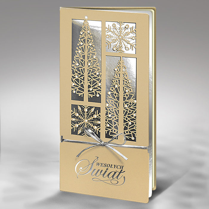 - laserowo wycinany motyw świąteczny z choinkami i śnieżynkami