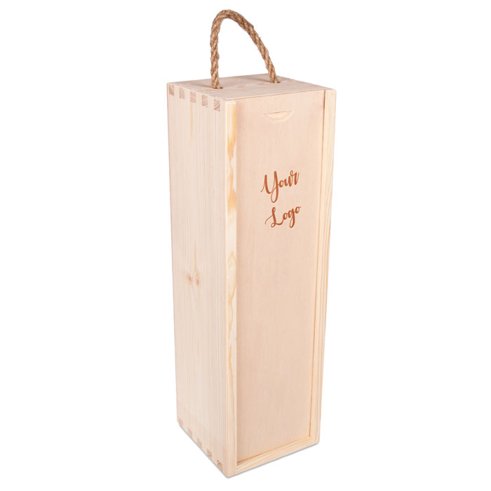 Minimalistyczna, a zarazem bardzo praktyczna skrzynka na jedną butelkę wina wykonana z naturalnego drewna sosnowego. Wsuwana pokrywa oraz jutowy sznurek tworzą klasyczną całość, idealną do wręczenia w formie prezentu. Dzięki możliwości wygrawerowania logo lub grafiki wektorowej - świetnie sprawdzi się również jako stylowe opakowanie firmowe.