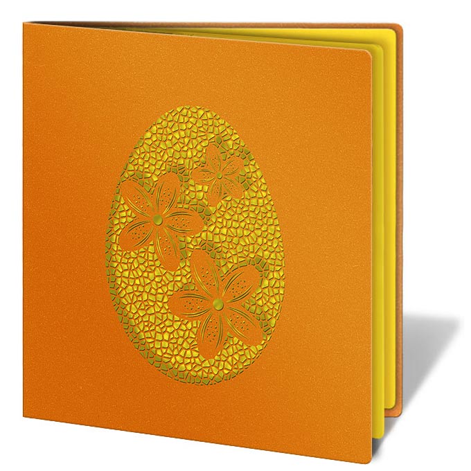 Kartka Wielkanocna z Laserowym Wycięciem Pomarańczowa Pisanka W154
