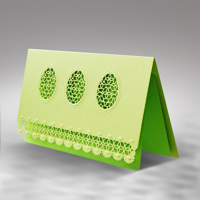 Kartka Wielkanocna z Ażurowym Zdobieniem Wiosenne Zielone Pisanki