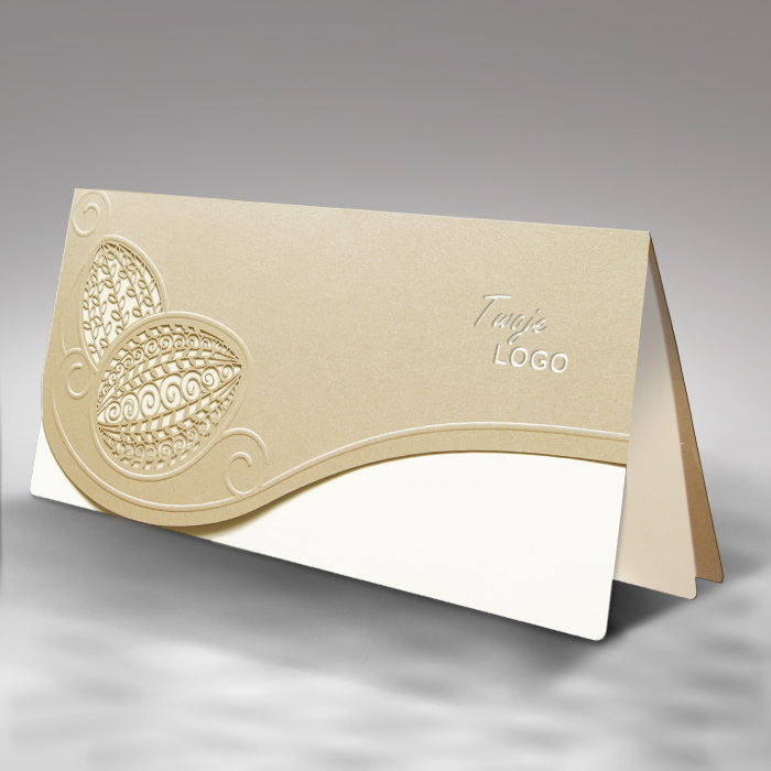 Matowa wkładka w kolorze ecru subtelnie dopełnia całość, zapewniając eleganckie tło dla życzeń i zachowując spójność kolorystyczną projektu. Kartka doskonale sprawdzi się zarówno w korespondencji firmowej, jak i w bardziej formalnych życzeniach prywatnych.
