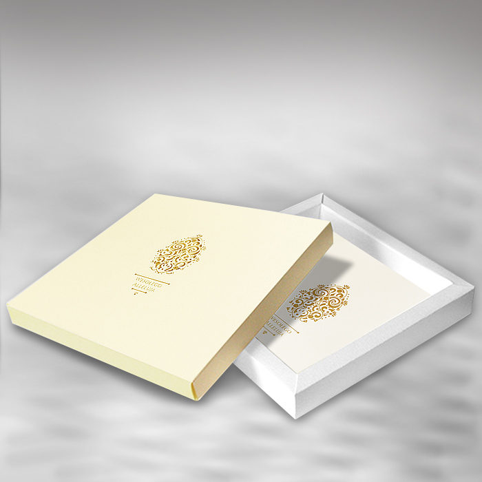Wewnątrz znajduje się wkładka do nadruku tekstu, wykonana z matowego papieru ecru.