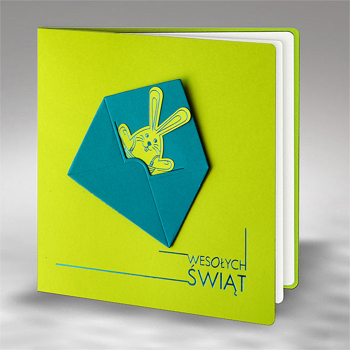 Nowoczesna Kartka Wielkanocna z Aplikacją Wesoły Królik w Kopercie